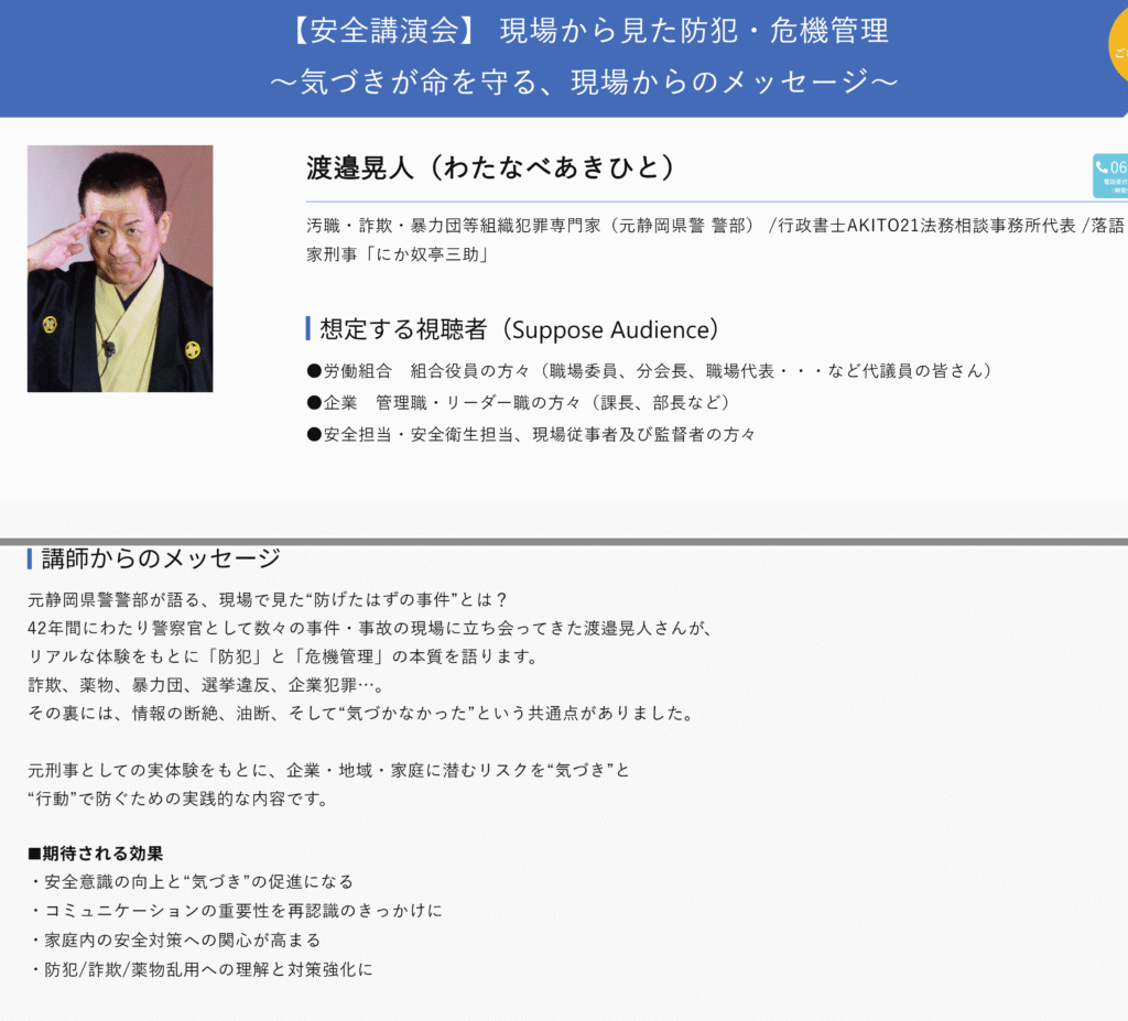 【安全講演会】 『現場から見た防犯・危機管理 〜気づきが命を守る、現場からのメッセージ〜』(渡邉晃人さん)