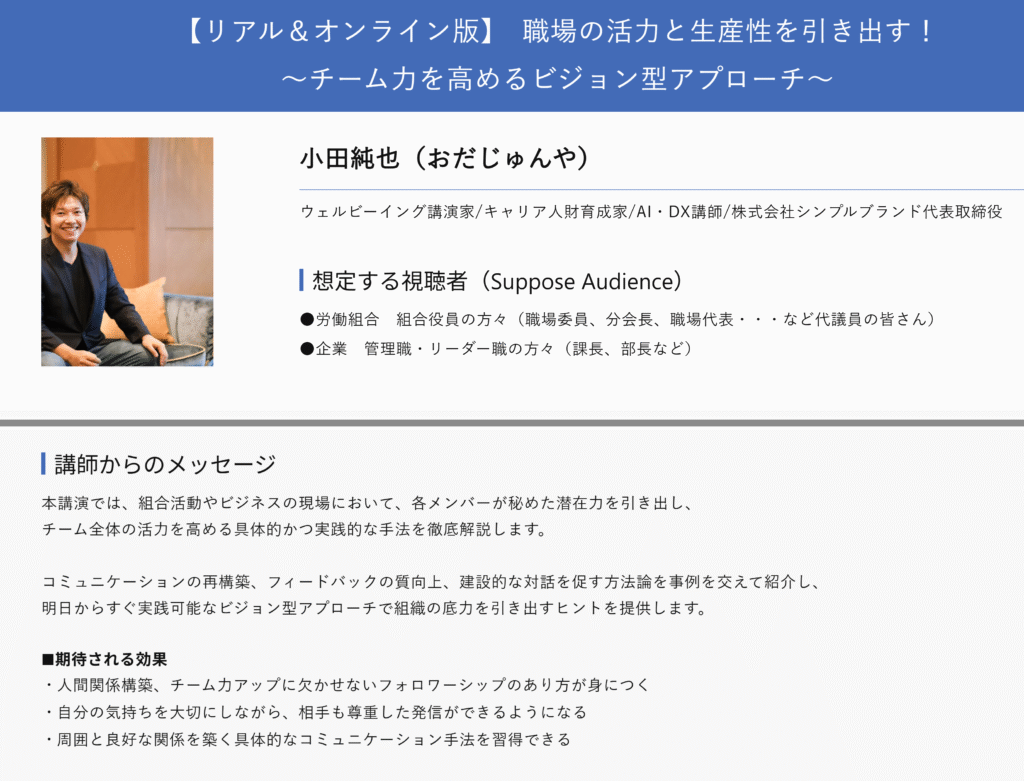 『職場の活力と生産性を引き出す! 〜チーム力を高めるビジョン型アプローチ〜』(小田純也さん)