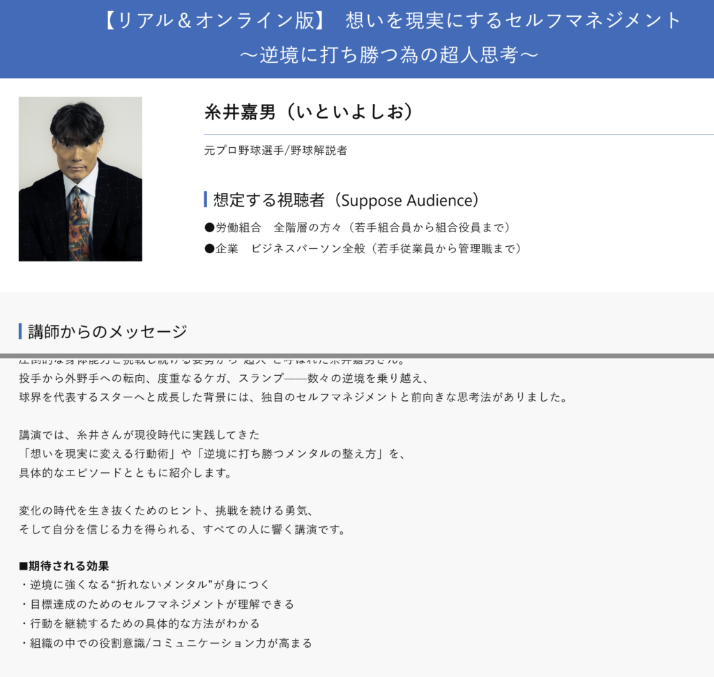 ・プロ野球審判として30年間、5万人の観客から罵声を浴びるような極限のプレッシャーの中で仕事をしてきた実体験が、非常に説得力があり、参加者の心を打ったと評判でした。