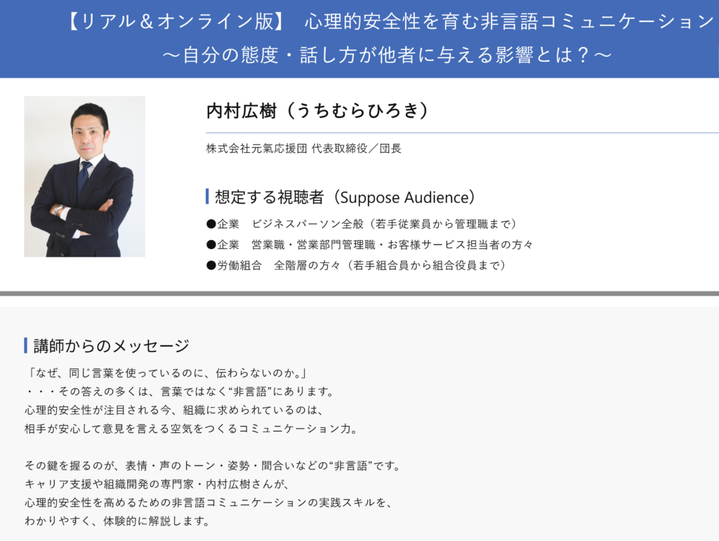 『心理的安全性を育む非言語コミュニケーション 〜自分の態度・話し方が他者に与える影響とは?〜』(内村広樹さん)