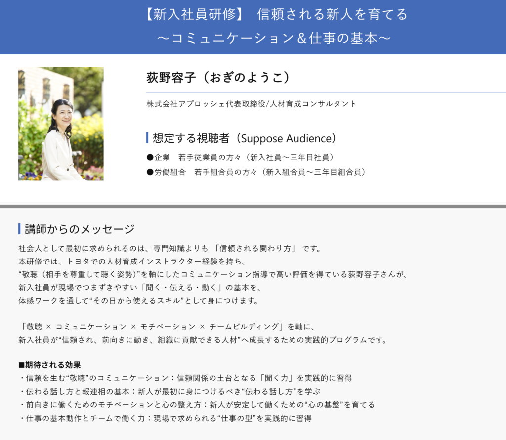 『信頼される新人を育てる 〜コミュニケーション&仕事の基本〜』(荻野容子さん)