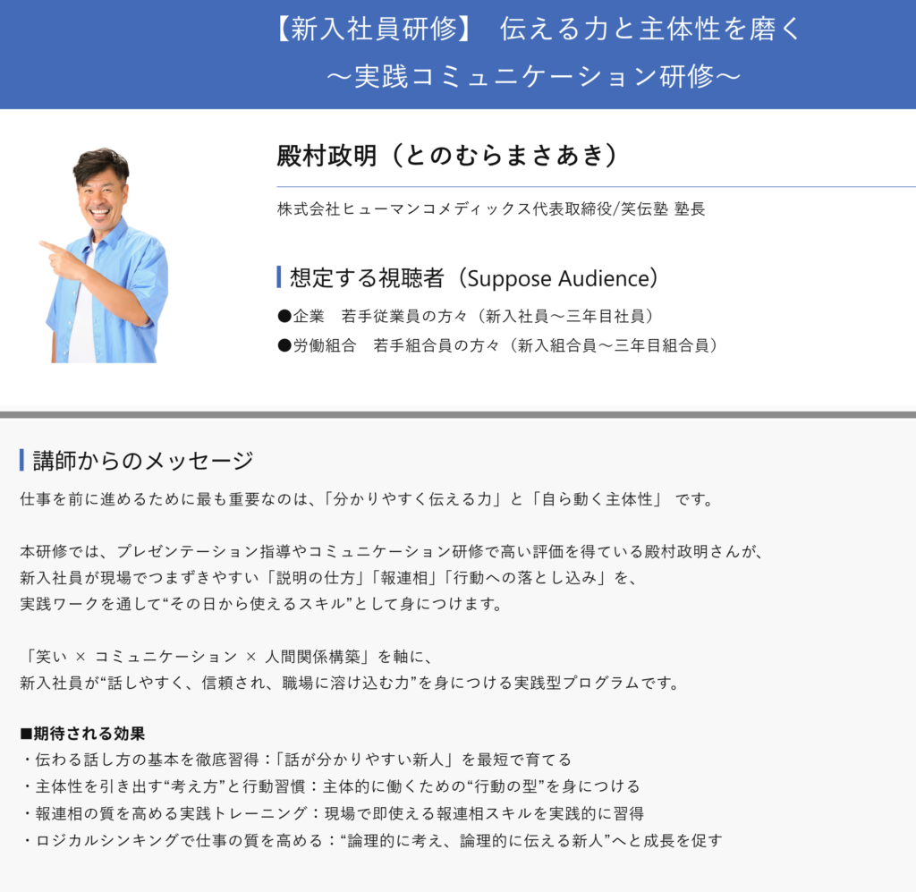 『伝える力と主体性を磨く 〜実践コミュニケーション研修〜』(殿村政明さん)