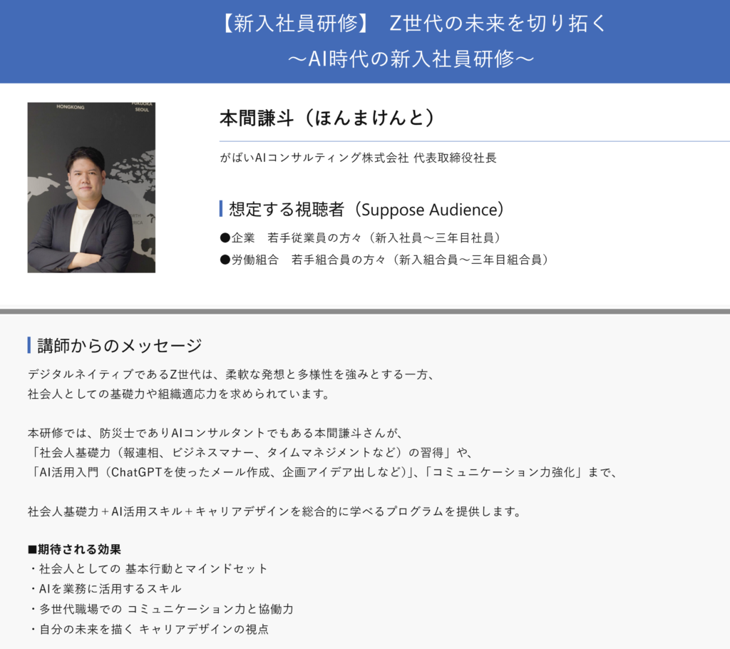 『Z世代の未来を切り拓く ― AI時代の新入社員研修』(本間謙斗さん)