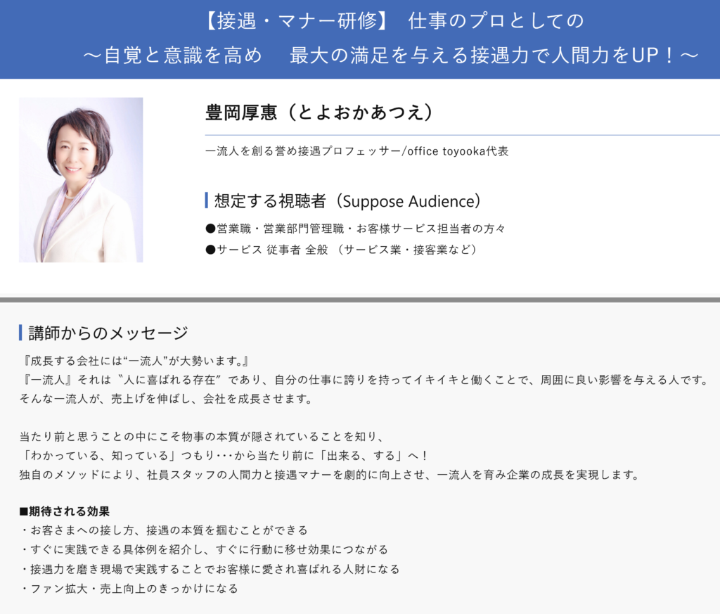 仕事のプロとしての 〜自覚と意識を高め  最大の満足を与える接遇力で人間力をUP!〜』(豊岡厚惠さん