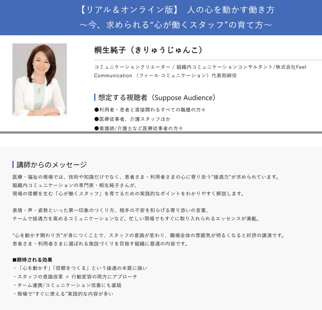 人の心を動かす働き方 〜今、求められる“心が働くスタッフ”の育て方〜』(桐生純子さん