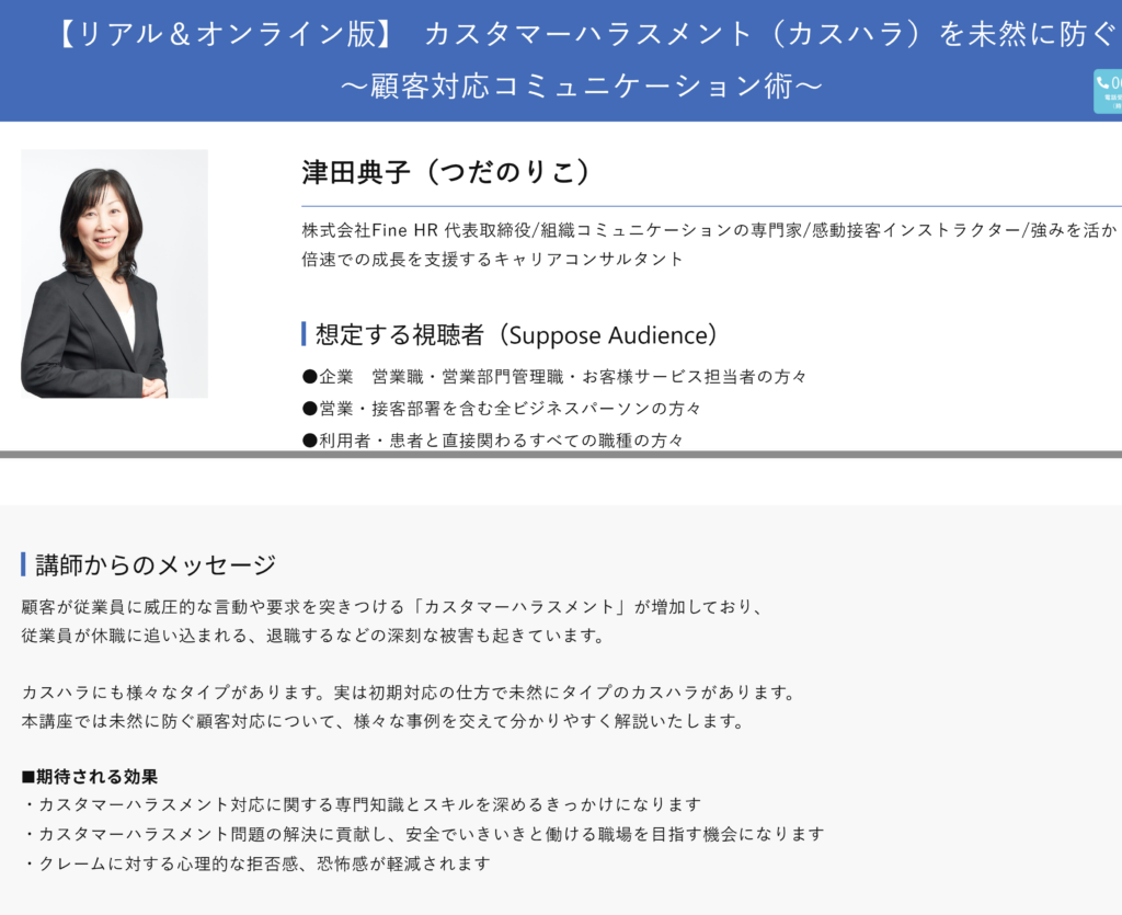 カスタマーハラスメント(カスハラ)を未然に防ぐ 〜顧客対応コミュニケーション術〜』(津田典子さん