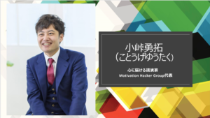 小峠勇拓(ことうげゆうたく)マインド リノベーション代表/ 心に届ける講演家/ 学年ビリ・不登校からのTOEIC990点満点英語コーチ想定する視聴者(Suppose Audience)●労働組合 組合役員の方々(職場委員、分会長、職場代表・・・など代議員の皆さん) ●企業 管理職・リーダー職の方々(課長、部長など)