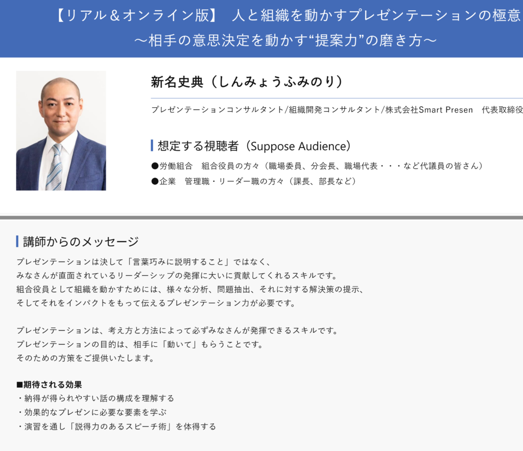 『人と組織を動かすプレゼンテーションの極意 〜相手の意思決定を動かす“提案力”の磨き方〜』(新名史典さん)