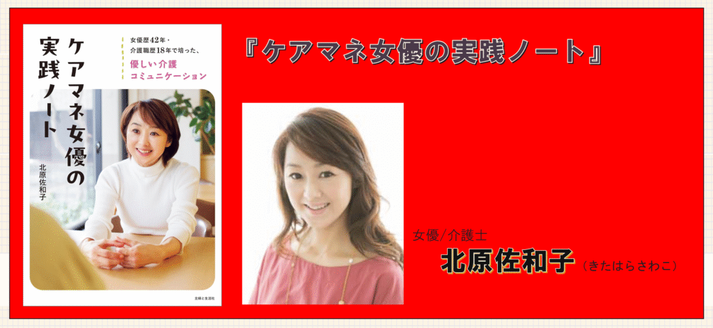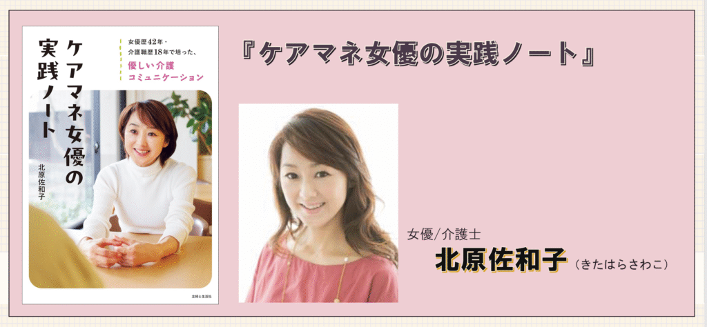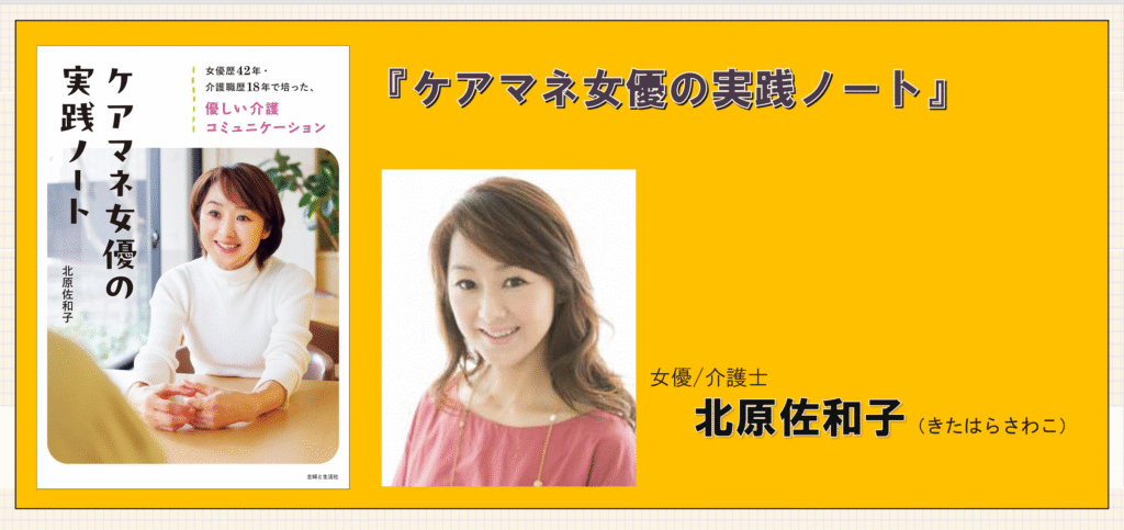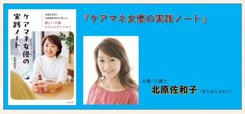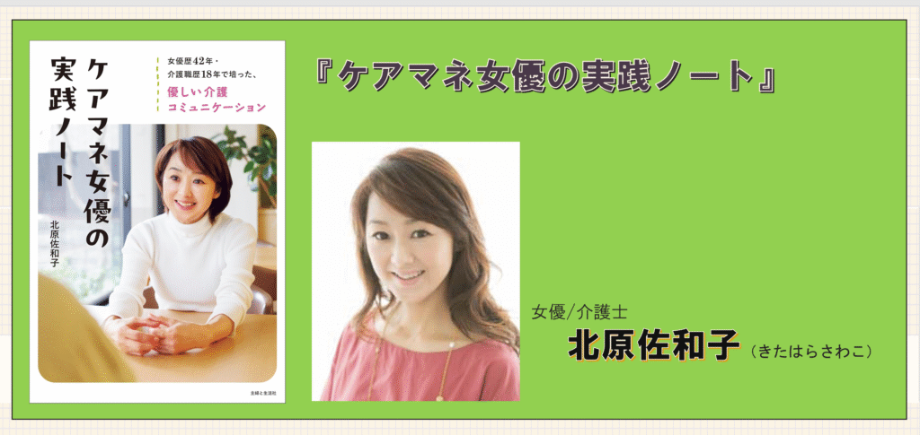 北原佐和子さんが介護現場で培った知恵や工夫を、女優ならではの視点で分かりやすく紹介されています。