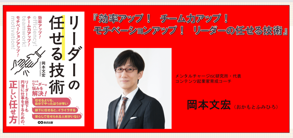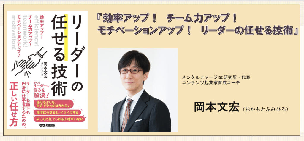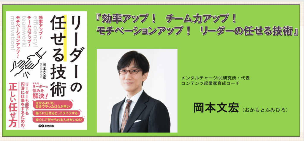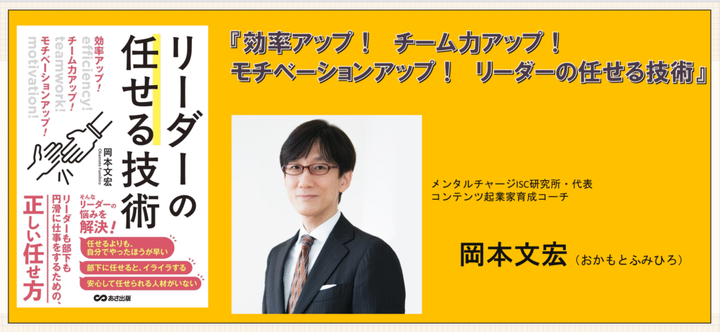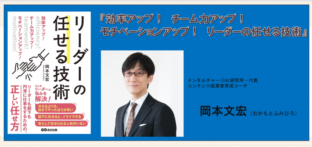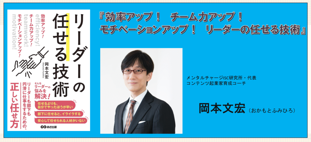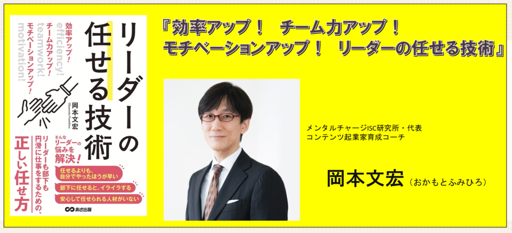 ・・・岡本文宏さん著書『効率アップ! チーム力アップ! モチベーションアップ! リーダーの任せる技術』は、部下に仕事を任せることが苦手なリーダーに向けて、任せる技術と心構えを体系的に解説した実践的なマネジメント書です。