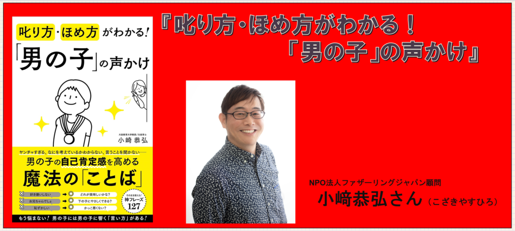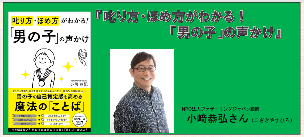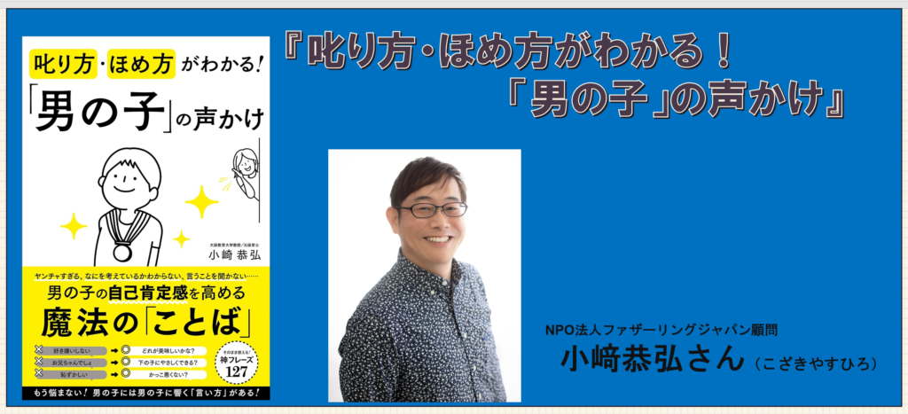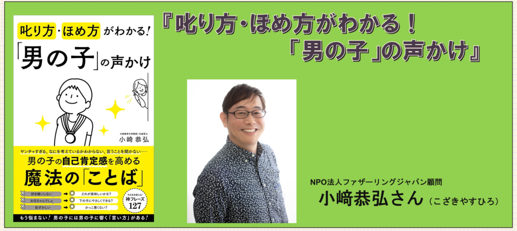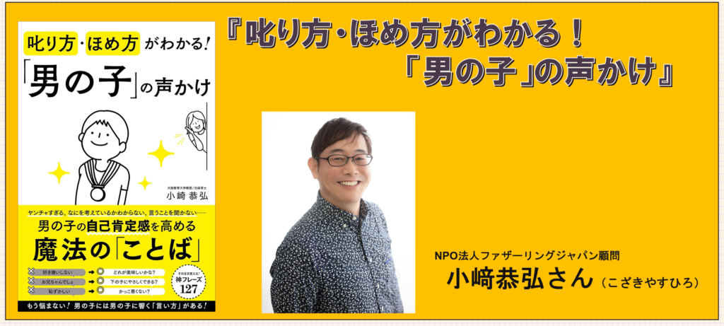 小﨑恭弘さん著書『叱り方・ほめ方がわかる!「男の子」の声かけ』は、「男の子の特性を理解し、行動を変える“伝わる言葉”をどう使うか?」を、具体的なフレーズと理由付きで解説した実践的な子育て本です。 男の子の“生態”から、叱る・ほめる・促す場面別の声かけまで、すぐに使える内容が体系的にまとまっています。