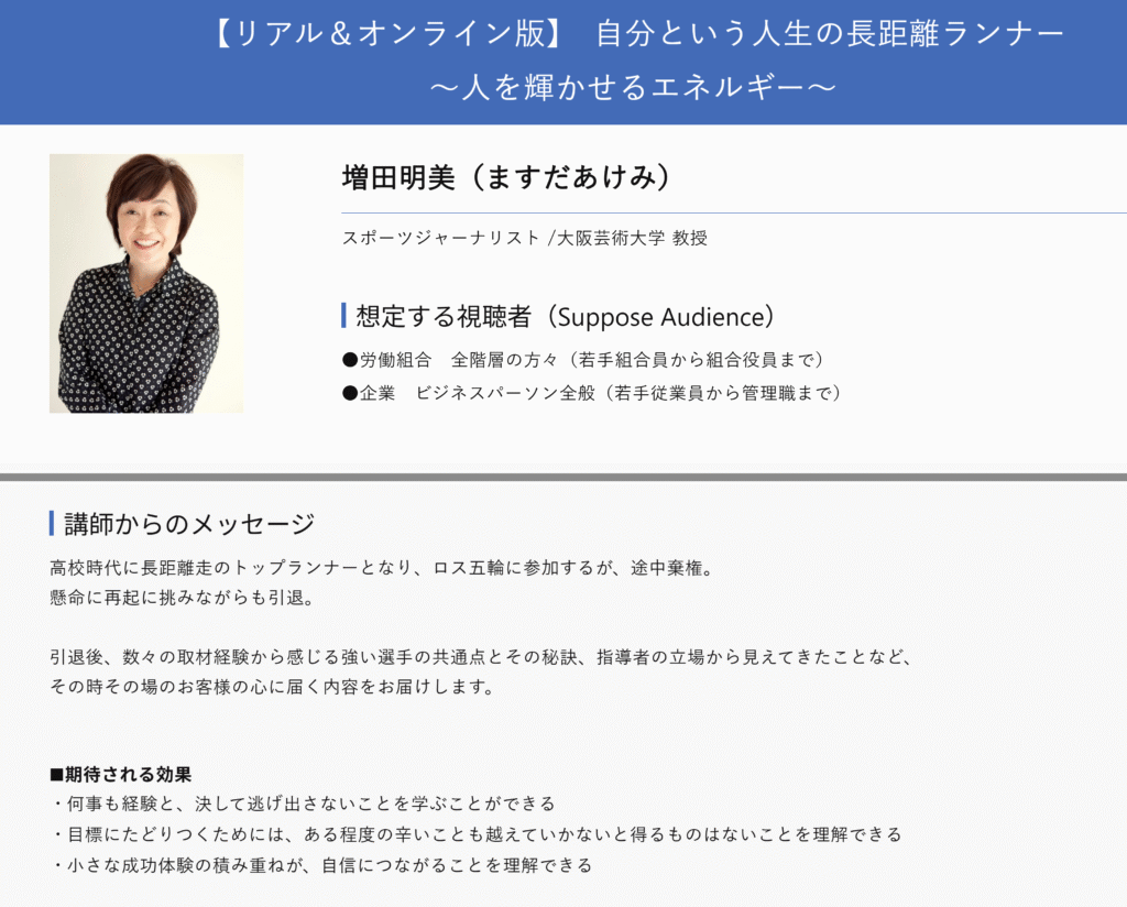 『自分という人生の長距離ランナー〜人を輝かせるエネルギー〜』(増田明美さん)