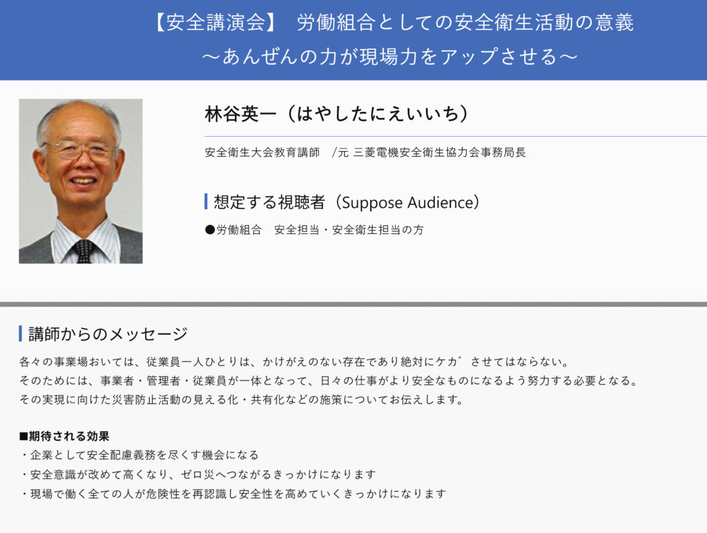 『労働組合としての安全衛生活動の意義 〜あんぜんの力が現場力をアップさせる〜』(林谷英一さん)