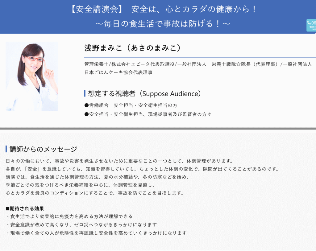 『安全は、心とカラダの健康から! 〜毎日の食生活で事故は防げる!〜』(浅野まみこさん)