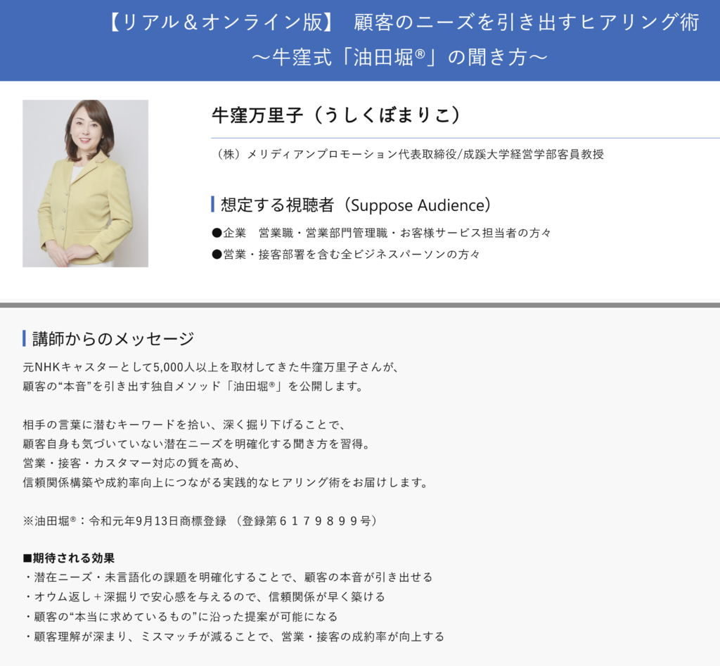 『顧客のニーズを引き出すヒアリング術 〜牛窪式「油田堀®」の聞き方』(牛窪万里子さん)