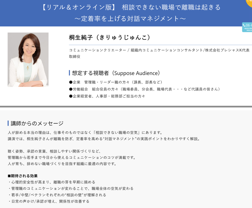 『相談できない職場で離職は起きる 〜定着率を上げる対話マネジメント〜』(桐生純子さん)
