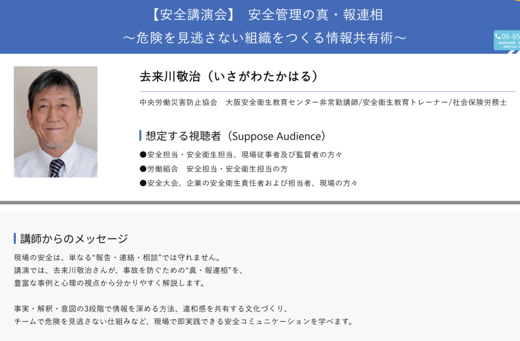 『安全管理の真・報連相 〜危険を見逃さない組織をつくる情報共有術〜』(去来川敬治さん)