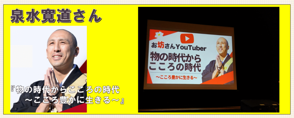 現在は、チャンネル登録者11万人を超えるyoutube『泉チャン プチ法話』の僧侶系クリエイターとしても活動され、『夕張高校卒業式』祝賀スピーチ動画はなんと!視聴回数1,000万回を超えます。