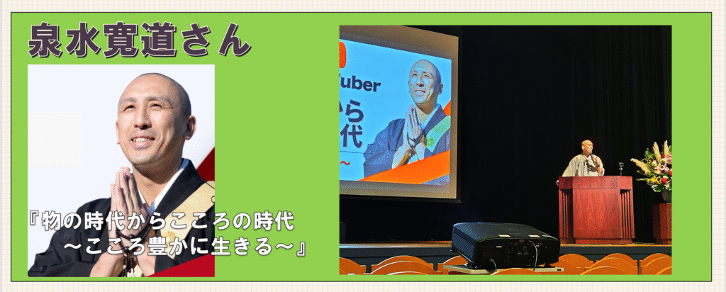 ・泉水さんの語りは、物質的な豊かさに偏った現代社会に対して、心の在り方や人とのつながりの大切さを問い直すものであり、多くの参加者の心に深く響いてたようです。