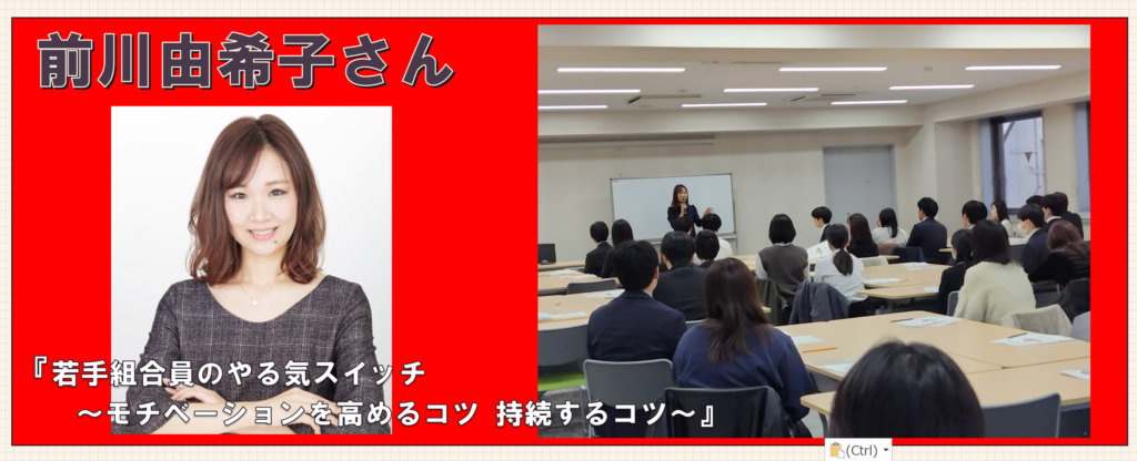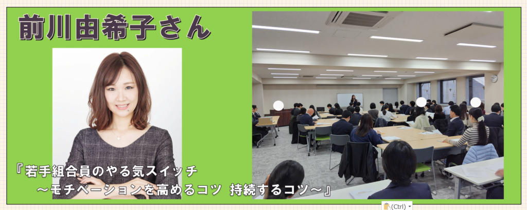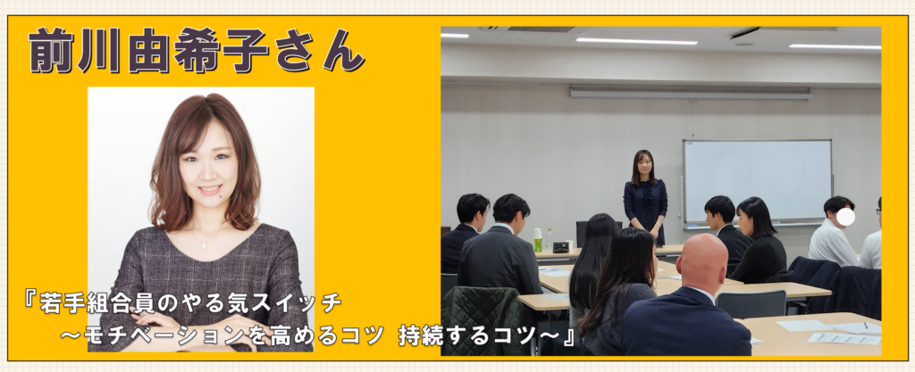 今回、某地方銀行従業員さま主催で若手組合員向け講演ということで、前川由希子さんをお招きし、講演会が開催されました。