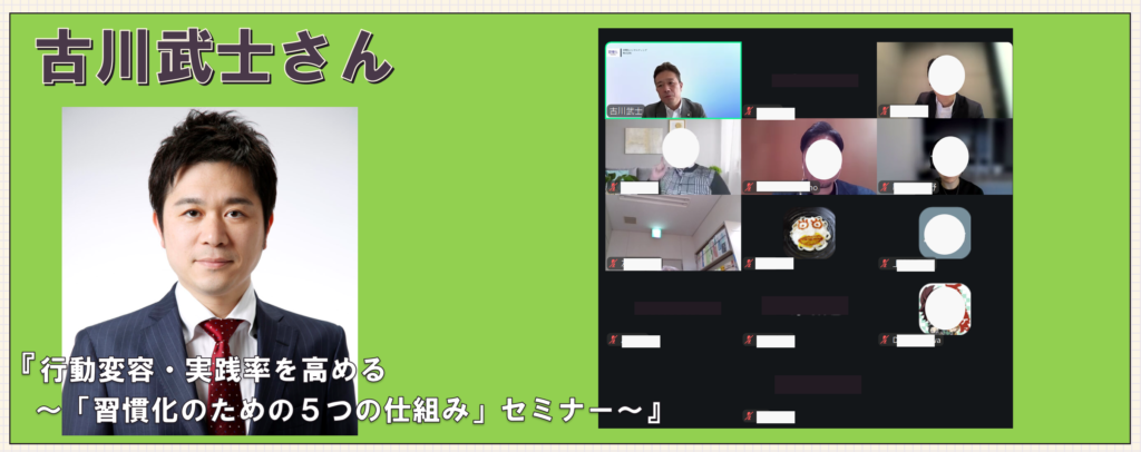 某企業人事部さま主催セミナーにて、古川武士さんをお招きしてのオンラインセミナーを開催いたしました。